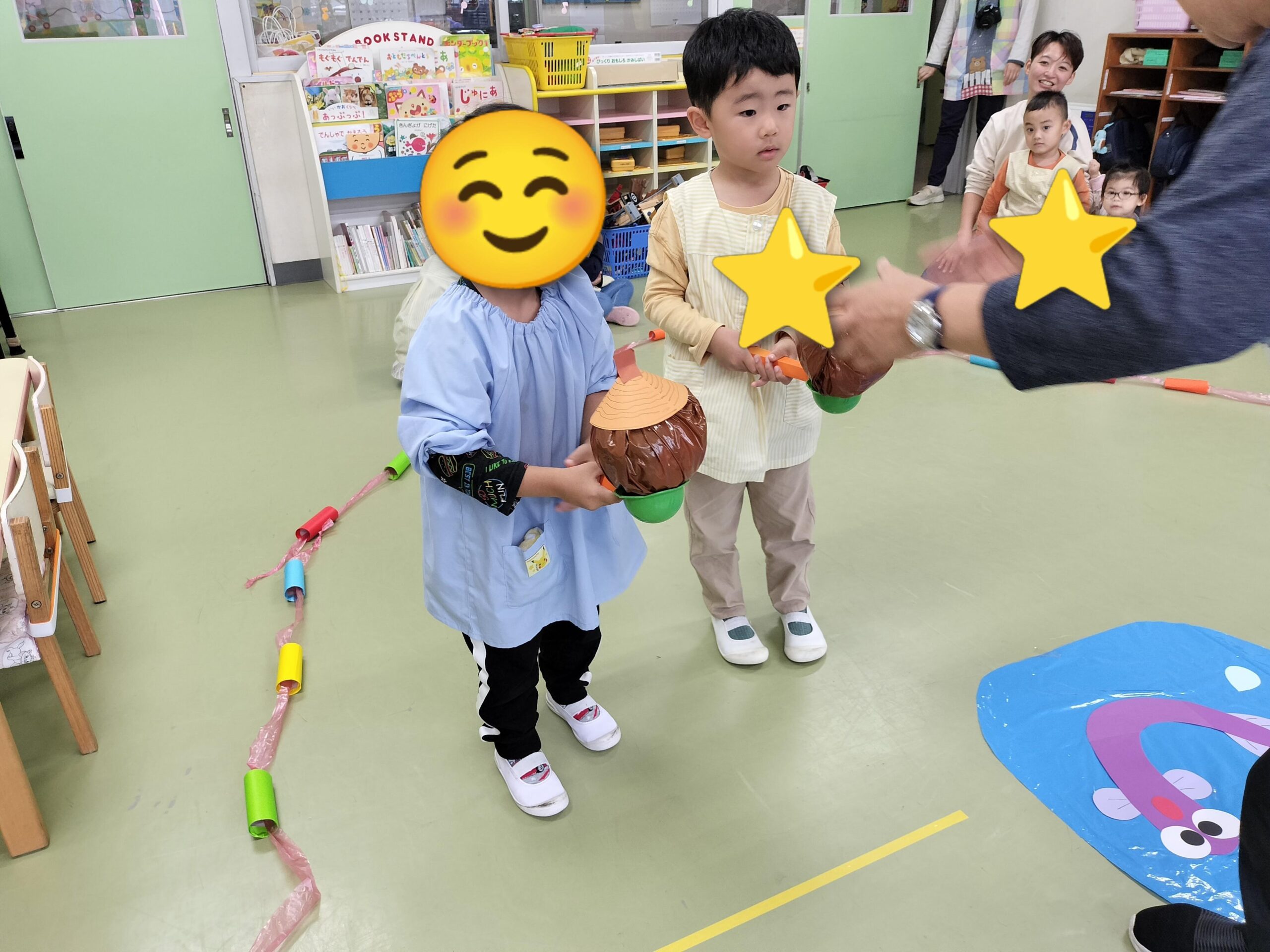 どんぐりが落ちないように、みんなドキドキしながらドングリを運んでいました✨