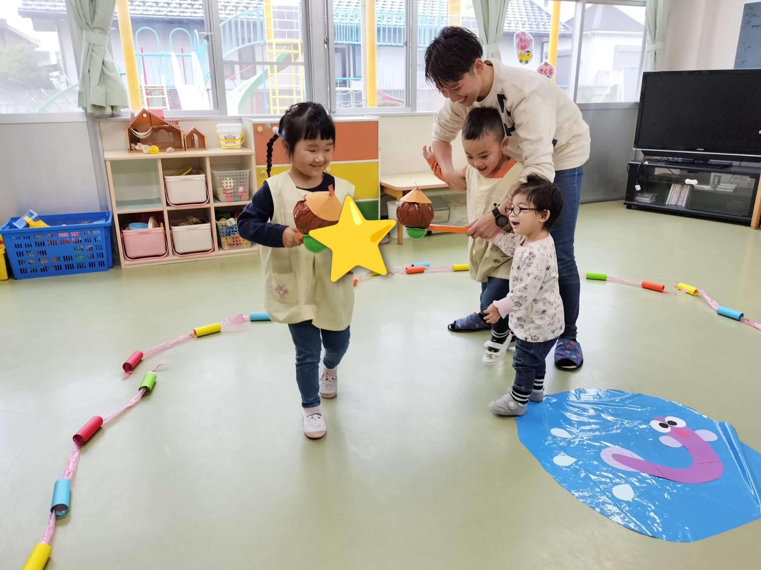 さくら組は、ドングリを運ぶゲームを行いました⭐
