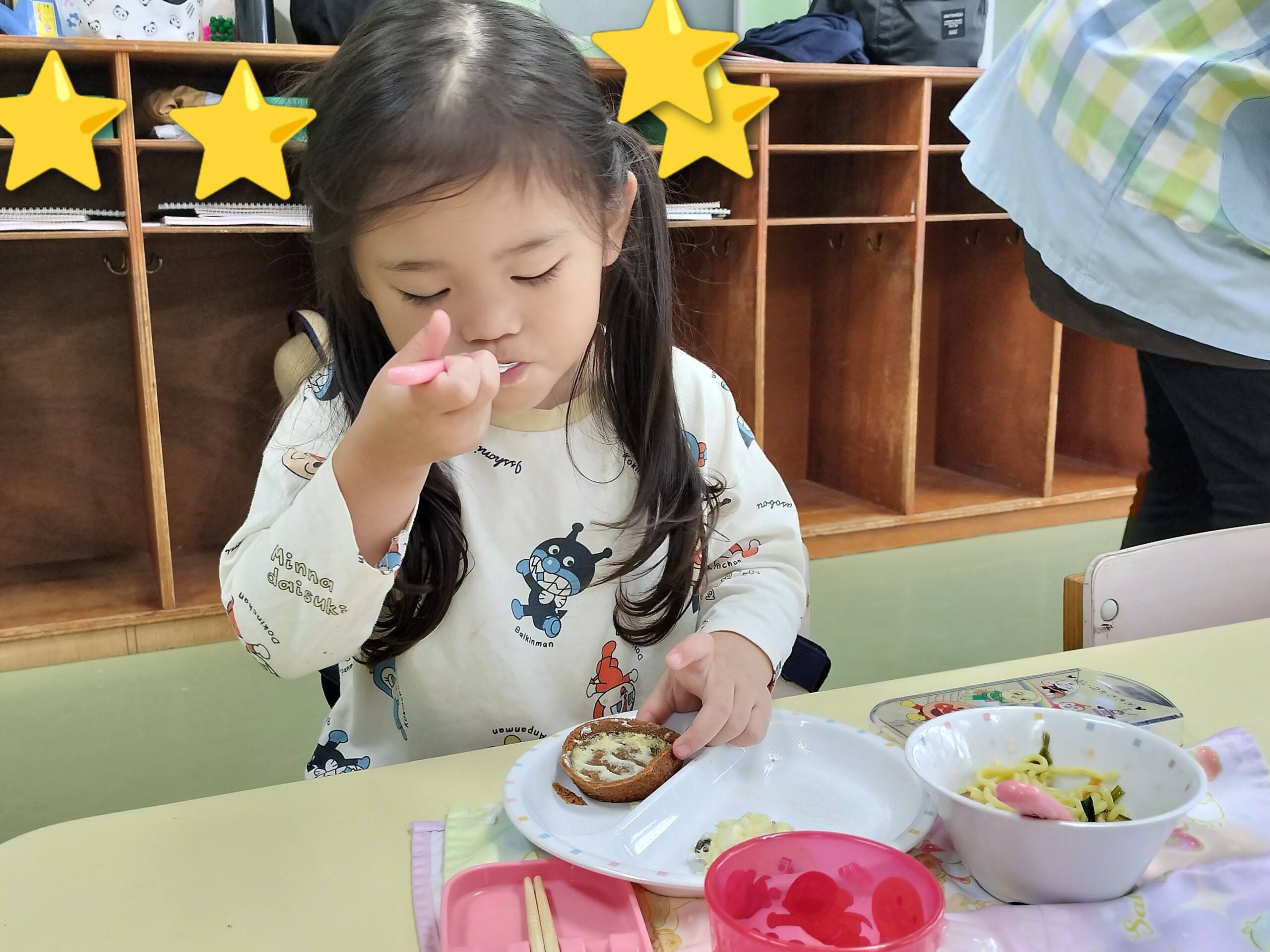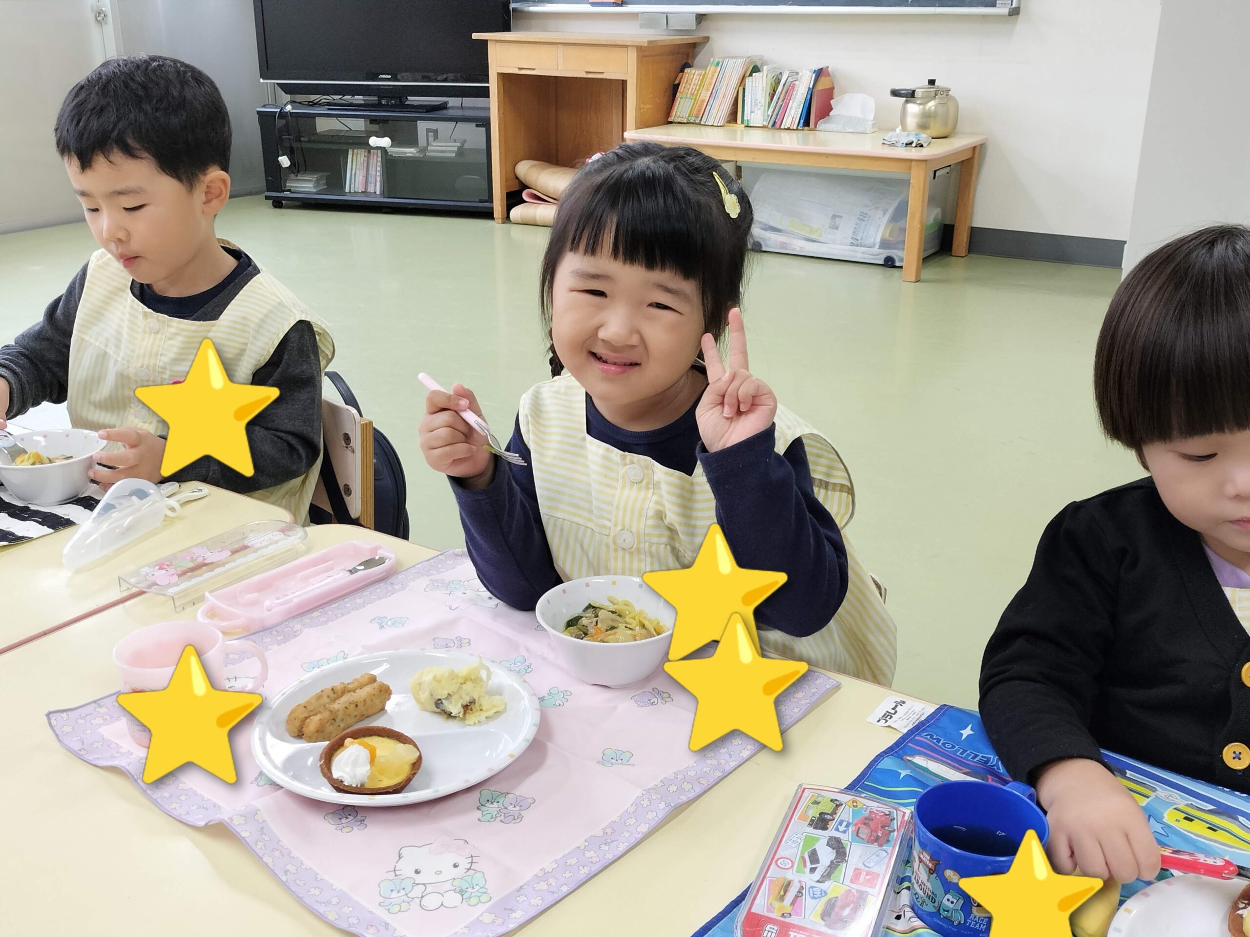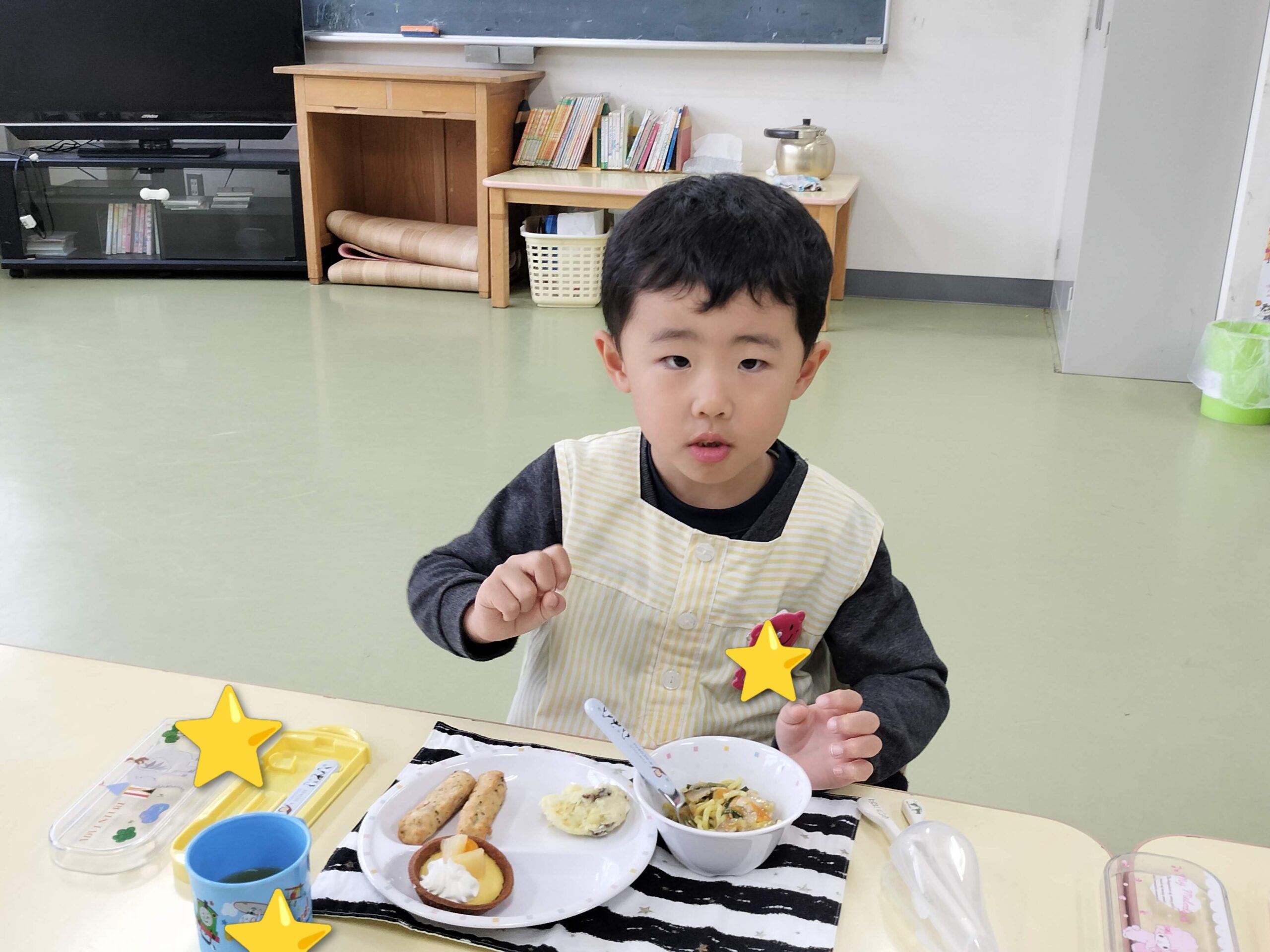 その後は、少しおもちゃで遊んでから給食を食べました🍚
