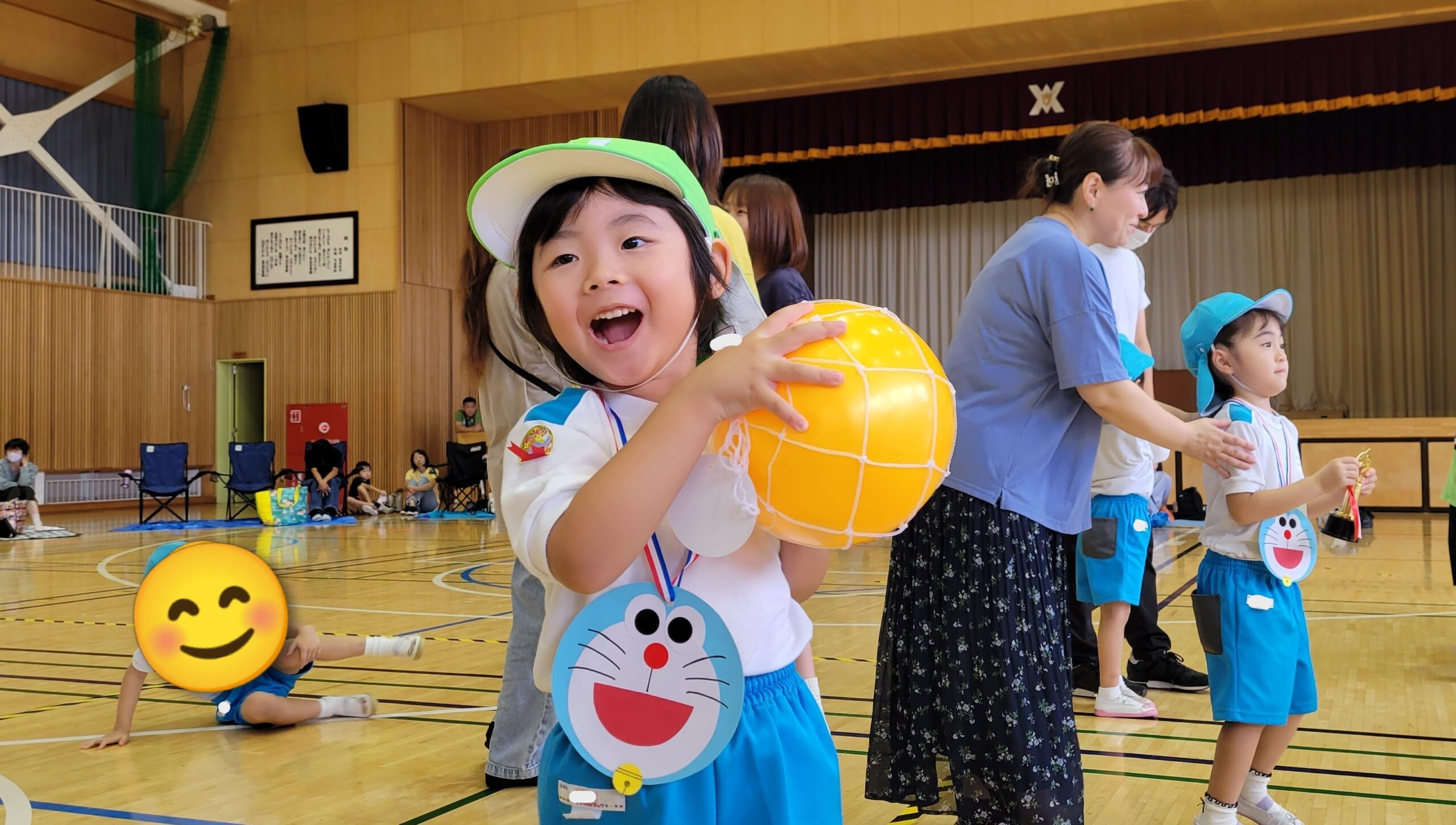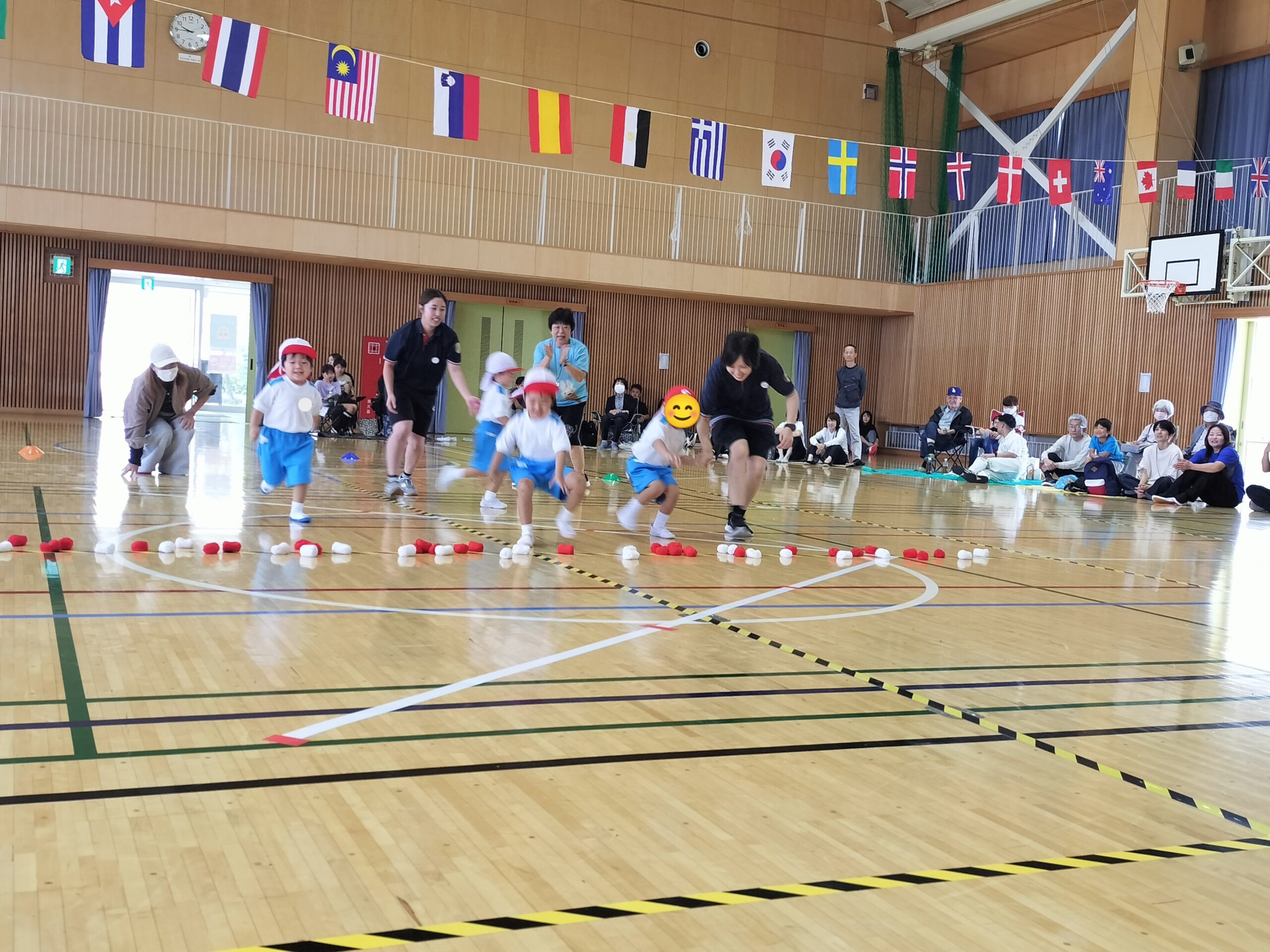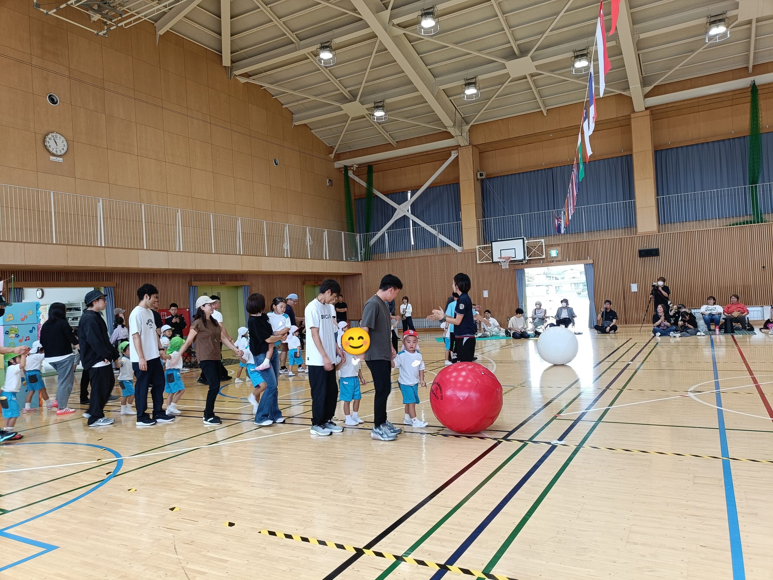 大玉ころがしではおうちの人と一緒に楽しく大玉ころがしをしました!赤が勝ちましたがみんなとってもニコニコしていて楽しんでいましたね🎵