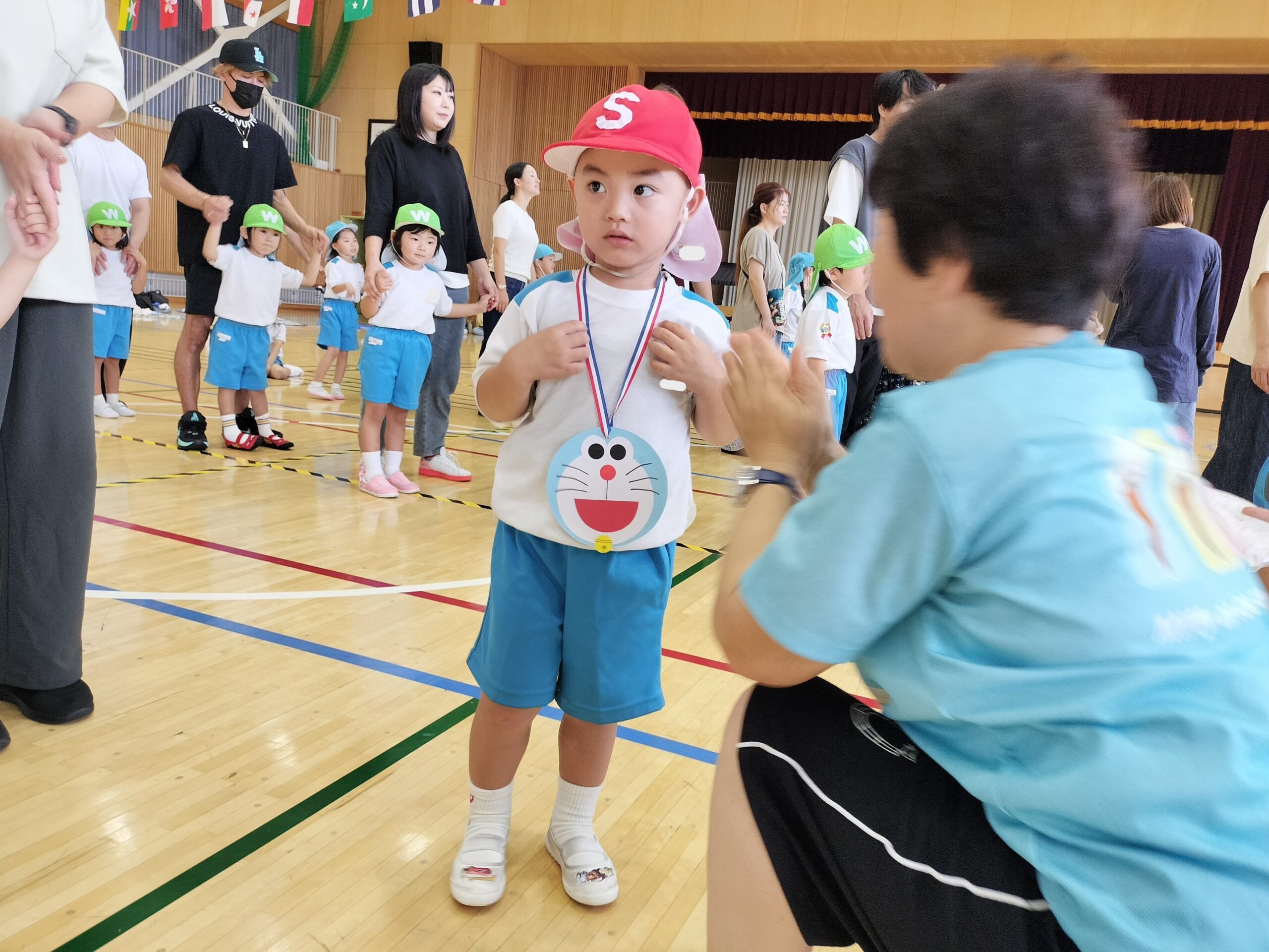 にじのむこうにを親子で一緒に踊って、最後はドラえもんのメダルとプレゼントをもらいました🏅