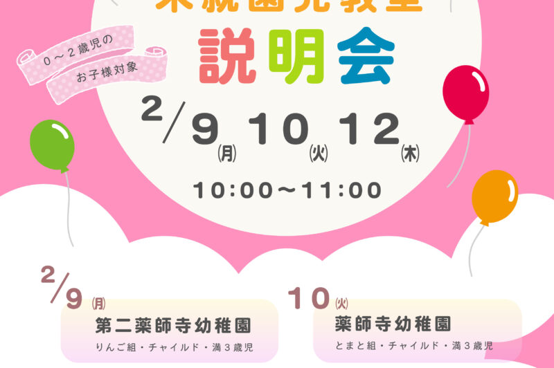 【笑顔で出会う、はじめての「みんな時間」】 来年度の未就園児向けの説明会を以下の日程で行います。 […]